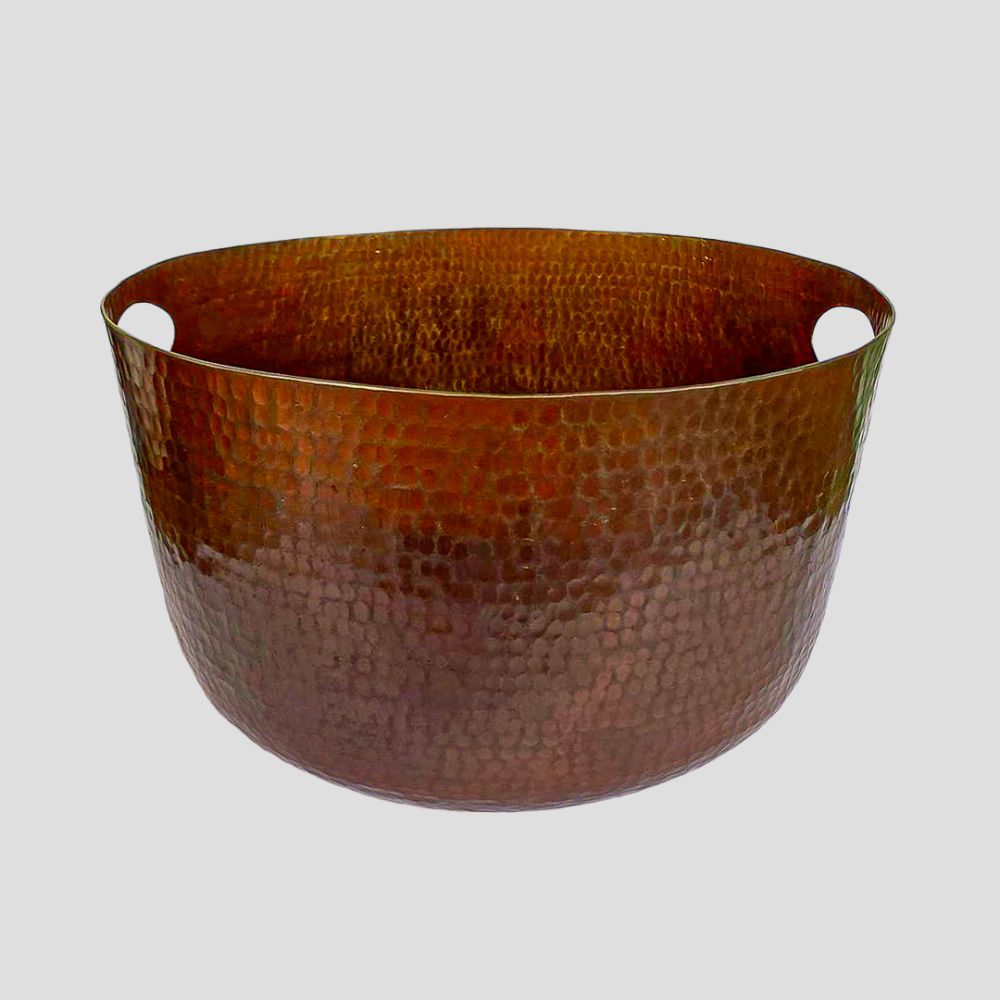 Producida en Santa Clara del Cobre, Michoacán, esta pieza se elabora en un entorno donde los lugareños llevan a cabo sus actividades diarias al ritmo calmado del golpeteo de los martillos sobre el cobre. Este oficio ancestral les ha otorgado renombre mundial como expertos en la metalistería del cobre martillado, una forma de arte con profundas raíces prehispánicas.