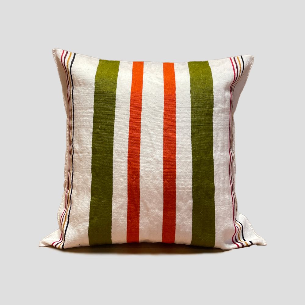Elaborada por las artesanas de Cabecera de San Andrés Larrainzar, esta colección fue el resultado de un taller realizado en asociación con la mayoría de las artesanas con las que trabajamos. En el taller, se les proporcionó el material y una paleta de colores específica creada por la diseñadora del Camino de los Altos, y ellas crearon las colecciones en comunidad. Se sugiere que el uso del cojín sea en casa o en un lugar cerrado, ya que dará un ambiente hogareño a su espacio.