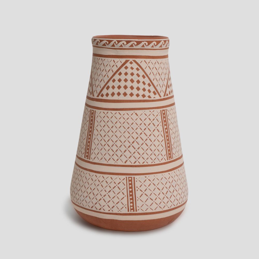 El Florero Patambán es una obra de arte elaborada con barro de la meseta purépecha. Su estilo y decorado hacen referencia al distintivo y reconocible estilo del pueblo de Patambán. Cada detalle del diseño ha sido cuidadosamente trabajado a mano alzada, reflejando la pasión y el talento de los artesanos locales. Este florero es más que una simple pieza decorativa; es un testimonio del legado cultural y la habilidad artesanal de la comunidad de Patambán.