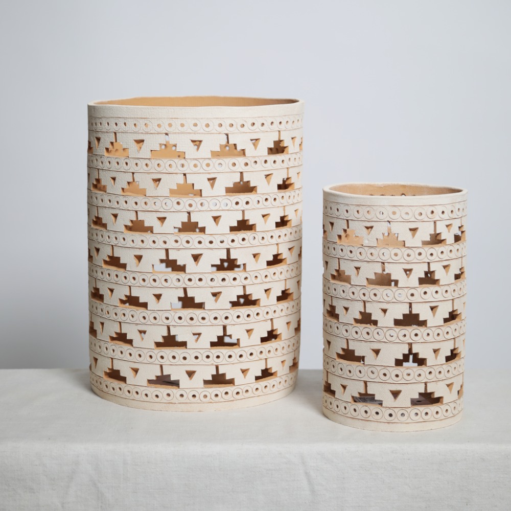 El jarrón monumento es una pieza decorativa que rinde homenaje al trabajo de la comunidad zapoteca en el conjunto monumental Atzompa, hogar de la familia Zárate Blanco. Este jarrón está elaborado con barro blanco, fruto de la creatividad de la familia Zárate, quienes constantemente buscan innovar para generar nuevas oportunidades de trabajo. Para obtener su tonalidad característica, se cubren las piezas con una arcilla especial antes de la cocción, lo que resulta en un color blanco hueso. Su fabricación puede llevar más de un mes, desde la recolección de la materia prima hasta el modelado manual en el torno y la decoración con figuras caladas que reflejan aspectos culturales de la región.