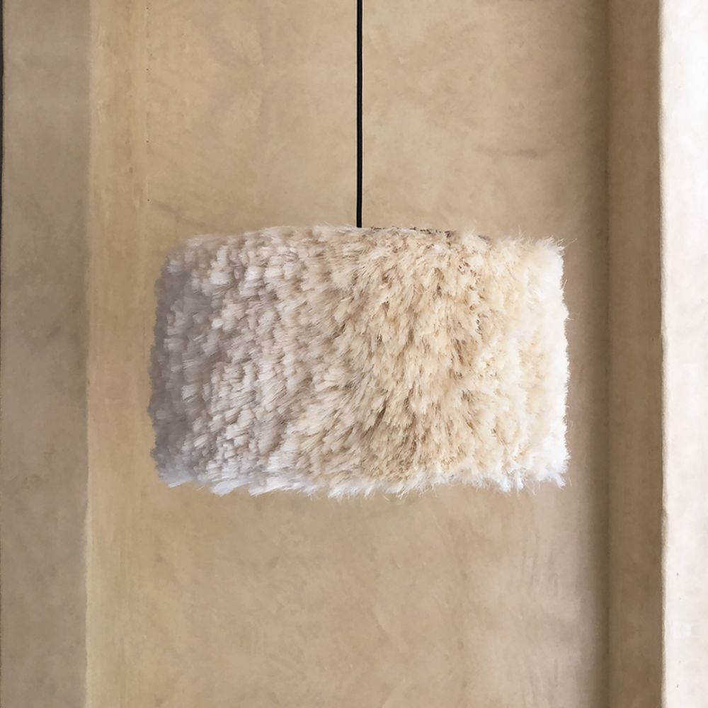 Cuidados: La fibra de agave, al ser de origen natural, cambia con el tiempo hasta tomar un tono un poco mas dorado. Se le puede dar mantenimiento peinando y sacudiendo el pelaje con los dedos. No se recomienda utilizar en exterior. Se recomienda el uso de luminarias tipo LED.