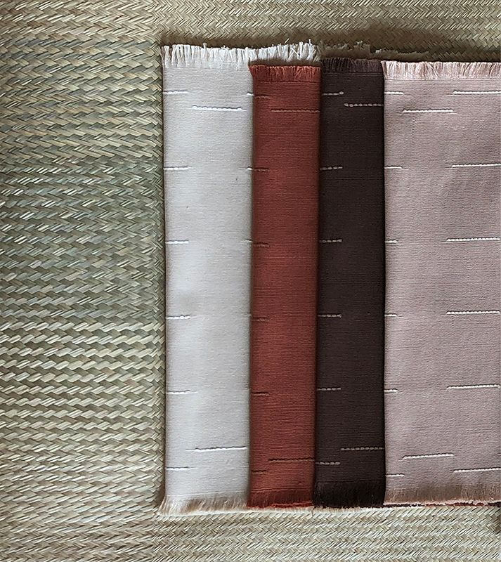 El juego incluye: 2 manteles individuales beige, 2 café, 2 mamey y 2 rosa.