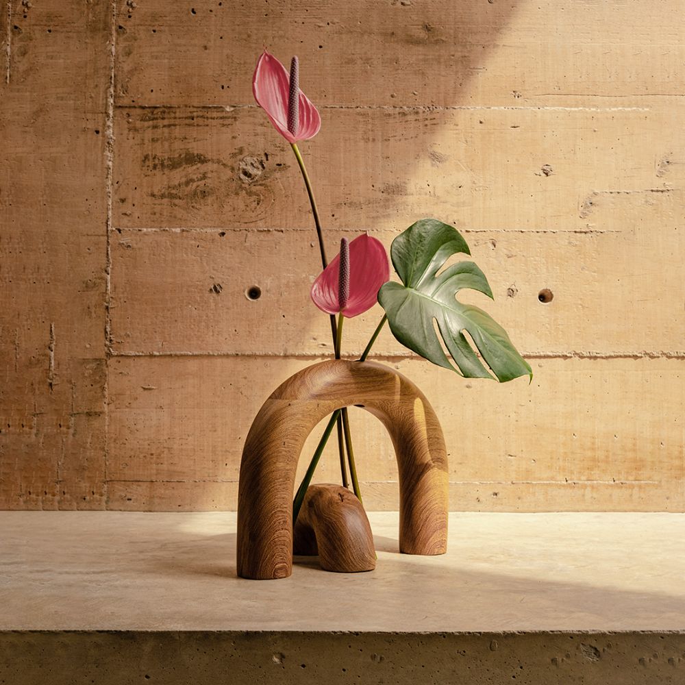 Set de floreros Selva, son la expresión de dos elementos especialidad del experto grupo de talla en madera Agua y Monte. Este colectivo nahua de talla fina en madera es originario del municipio de Pajapan, en el estado de Veracruz. Representan los grandes colosos del sur Veracruzano: el Volcán San Martín y el cerro de Santa Martha.