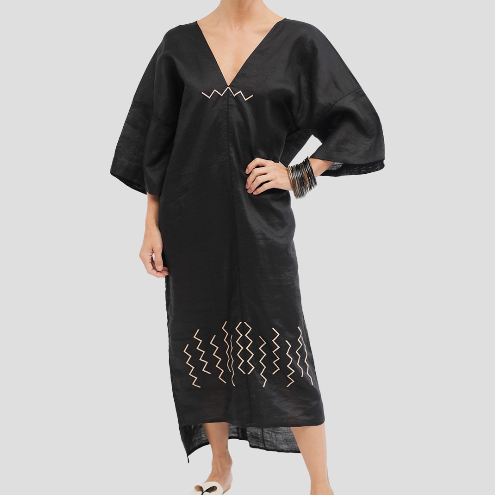 Huipil realizado con dos lienzos tejidos en telar de pedal con iconografía tradicional bordada en punto de cruz y acabados a mano.