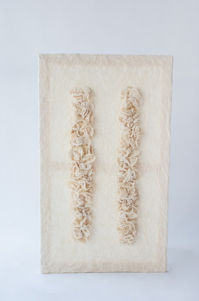 Wall art de Ixtle, con apelmasado de henequen, las texturas se realizan con ixtle tejido con ganchillo. El diseño del wall art-La Flor, es resultado de talleres de colaboración entre diseñadores y el grupo artesanal, brindando herramientas para el fortalecimiento creativo y de innnovación.